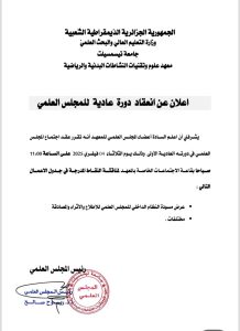 إعلان عن إنعقاد دورة العادية للمجلس العلمي @المجلس العلميإعلان مهم بواسطة admin institut STAPS آخر تحديث يناير 27, 2025 427 شارك إنعقاد دورة العادية للمجلس العلمي 427 شارك FacebookTwitterGoogle+ReddItWhatsAppPinterestالبريد الإلكتروني