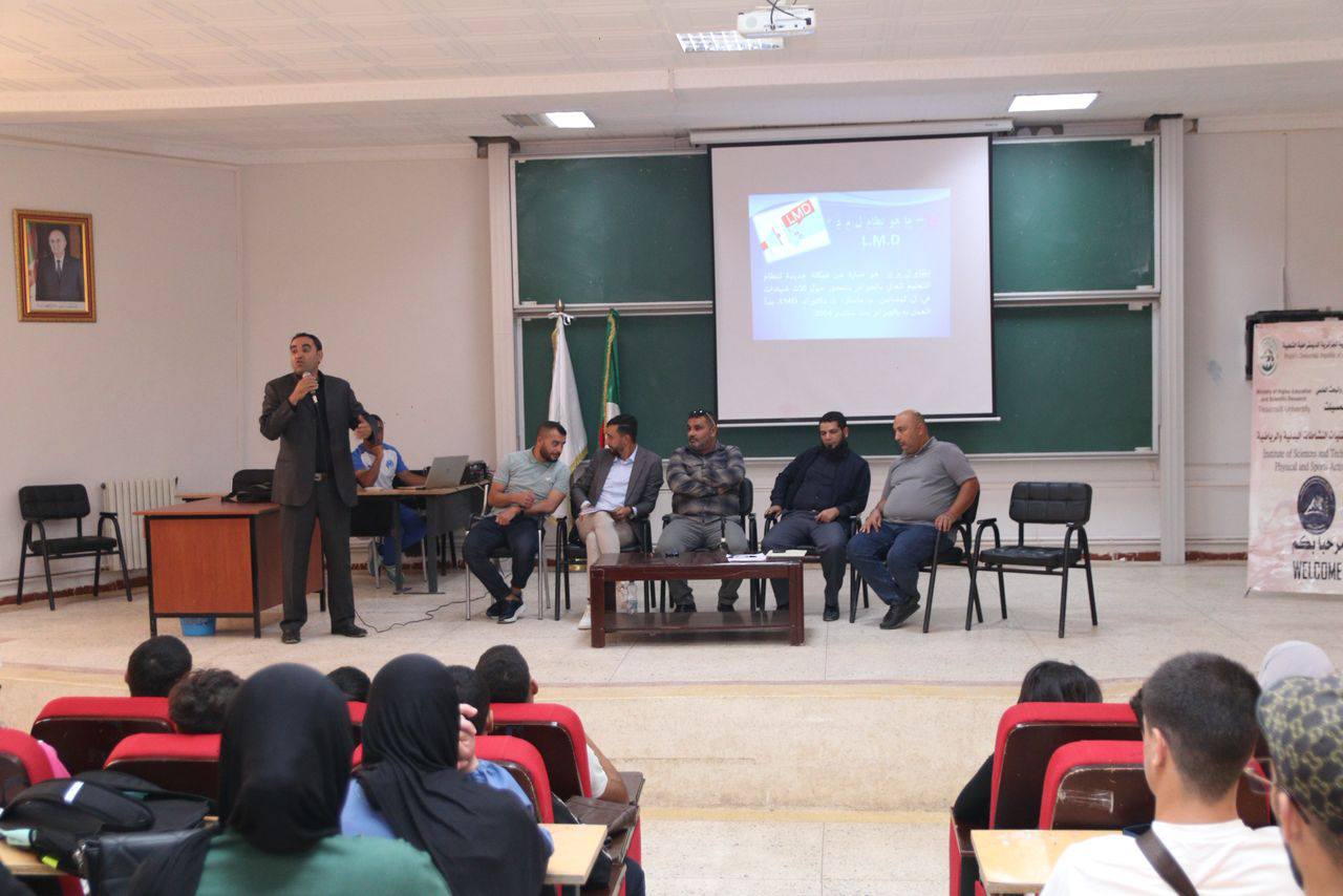 حيث تم خلال المحاضرة التطرق لنظام التكوين ل م د وكيفيات التقييم والإنتقال، وكذا المواظبة في الأعمال التطبيقية والموجهة، ومجموعة من التوجيهات البيداغوجية، مع فتح المجال أمام الطلبة لطرح استفساراتهم في هذا الحصوص.