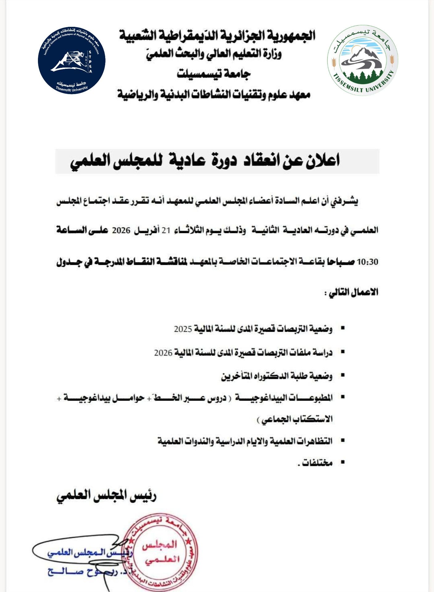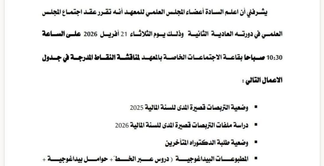إعلان عن إنعقاد دورة العادية للمجلس العلمي @إعلانات لطلبة الدكتوراه@إعلانات للأساتذة بواسطة admin institut STAPS في أبريل 8, 2026 1 شارك إنعقاد دورة العادية للمجلس العلمي 1 شارك FacebookTwitterGoogle+ReddItWhatsAppPinterestالبريد الإلكتروني