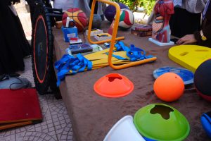 إلى جانب ذلك، قدّم النادي عرضًا لعتاد رياضي متنوع، عرّف من خلاله الطلبة بمختلف التجهيزات المستعملة في المجال الرياضي وأهميتها في تحسين الأداء البدني والتدريبي.